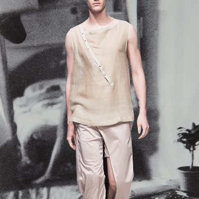 Collection inspired by the designer’s native Bohemia. It blends constructivist shapes with natural, rustic fabrics, highlighting contrasts in color and texture reminiscent of the Mediterranean.This collection is made for a man without boundaries, who expresses his identity through clothing.